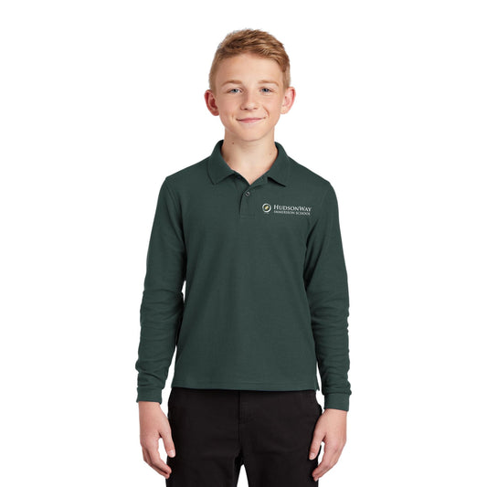 Short Sleeve Mesh Polo Youth Green Embroidered