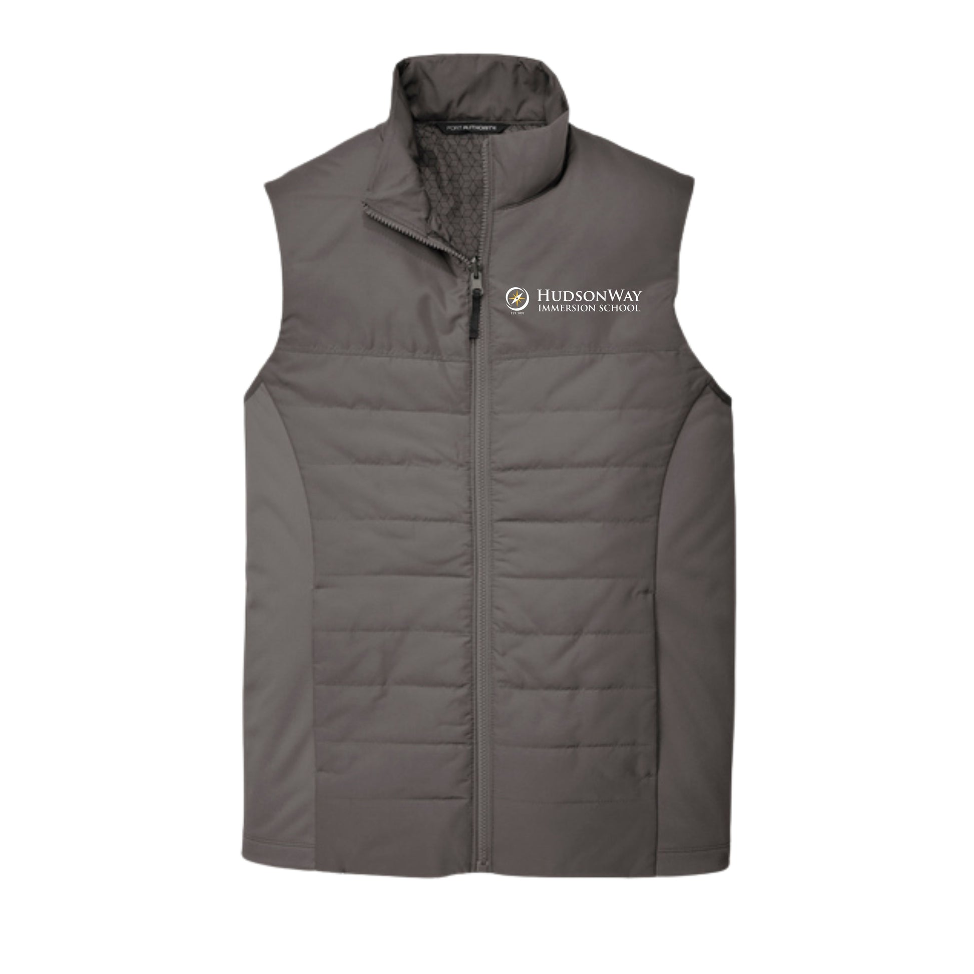 Lightweight insulation and stretch soft shell side panels make this HudsonWay vest a versatile, cozy layer for fall, winter or spring.